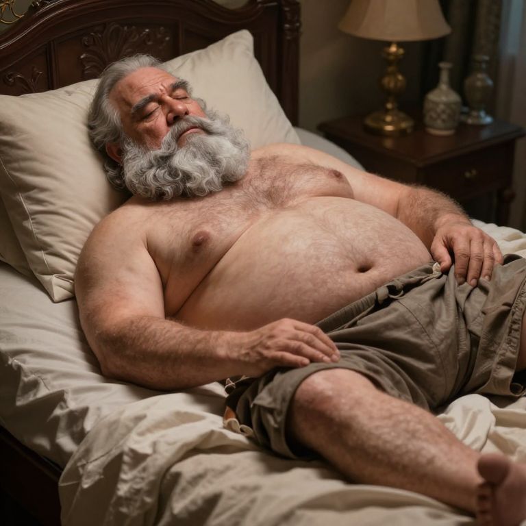 Asymmetry wrinkles old fat king, grey beard, sleeping in bed, full-body , Realistic,Photorealistic, super detailed, HDR , 8K, unreal engine,