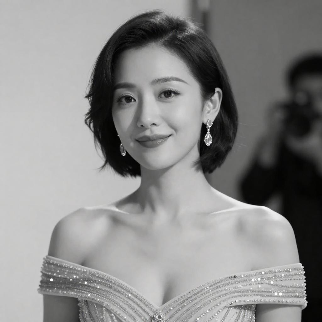 Black-and-White Elegant Wine Portrait Off-Shoulder Dress