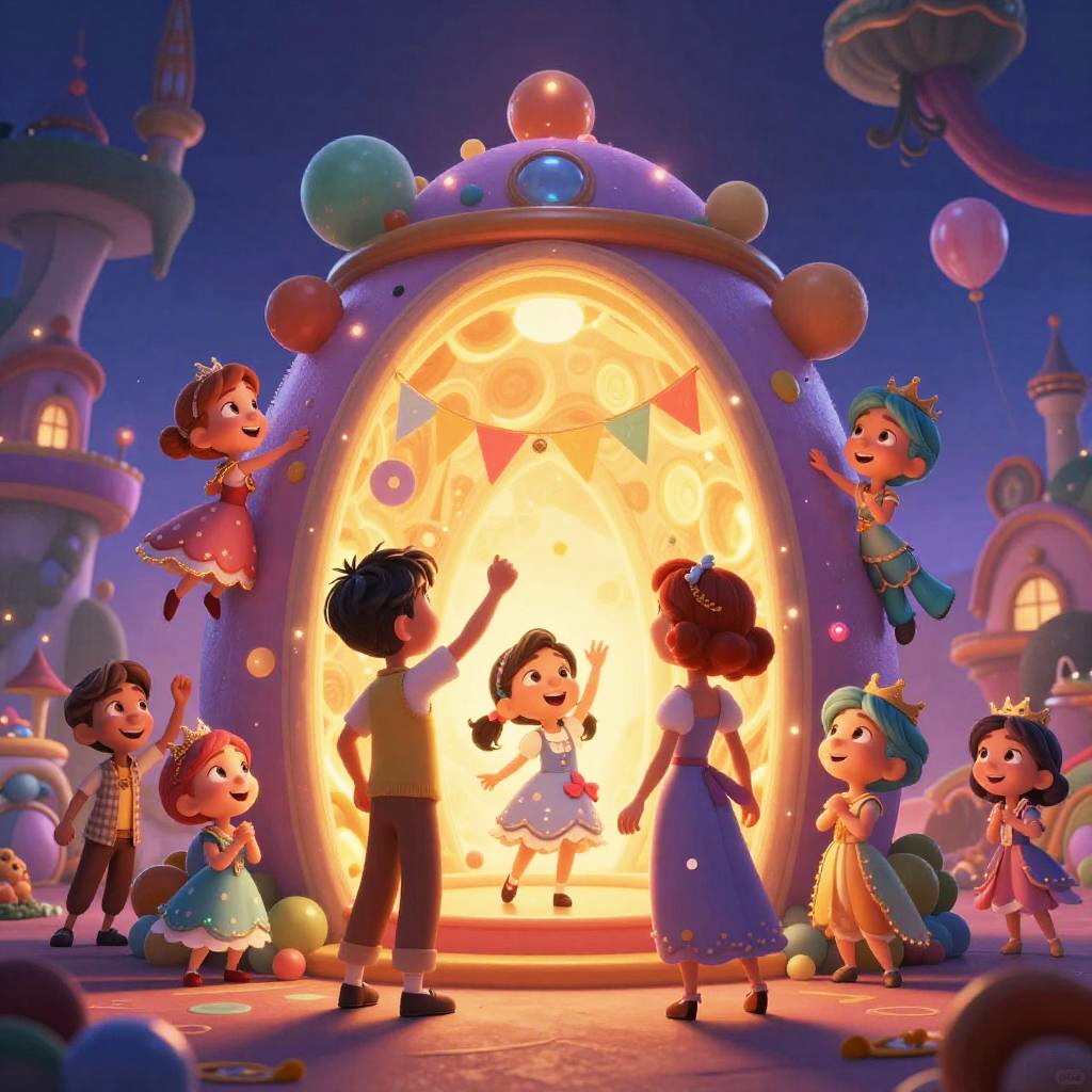 A detailed Disney Pixar inspired illustration of a colorful, enchanted glory hole with animated characters interacting joyfully, bright lighting, and a charming fantasy background full of wonder.