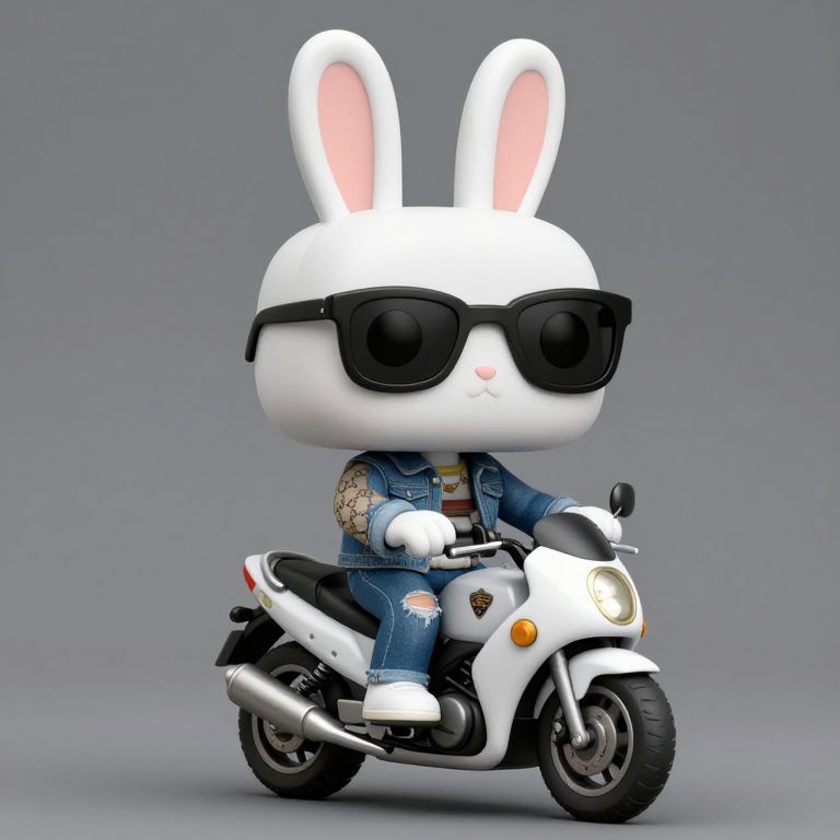 Cute CGI chihuahua in pink leather biker gear, goggles, and hat, riding a pink Honda motorcycle, white background.