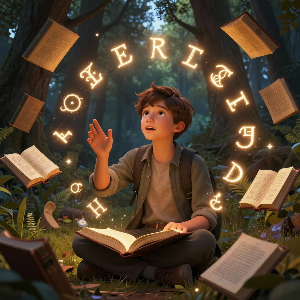 Red-Haired Boy in Enchanted Library