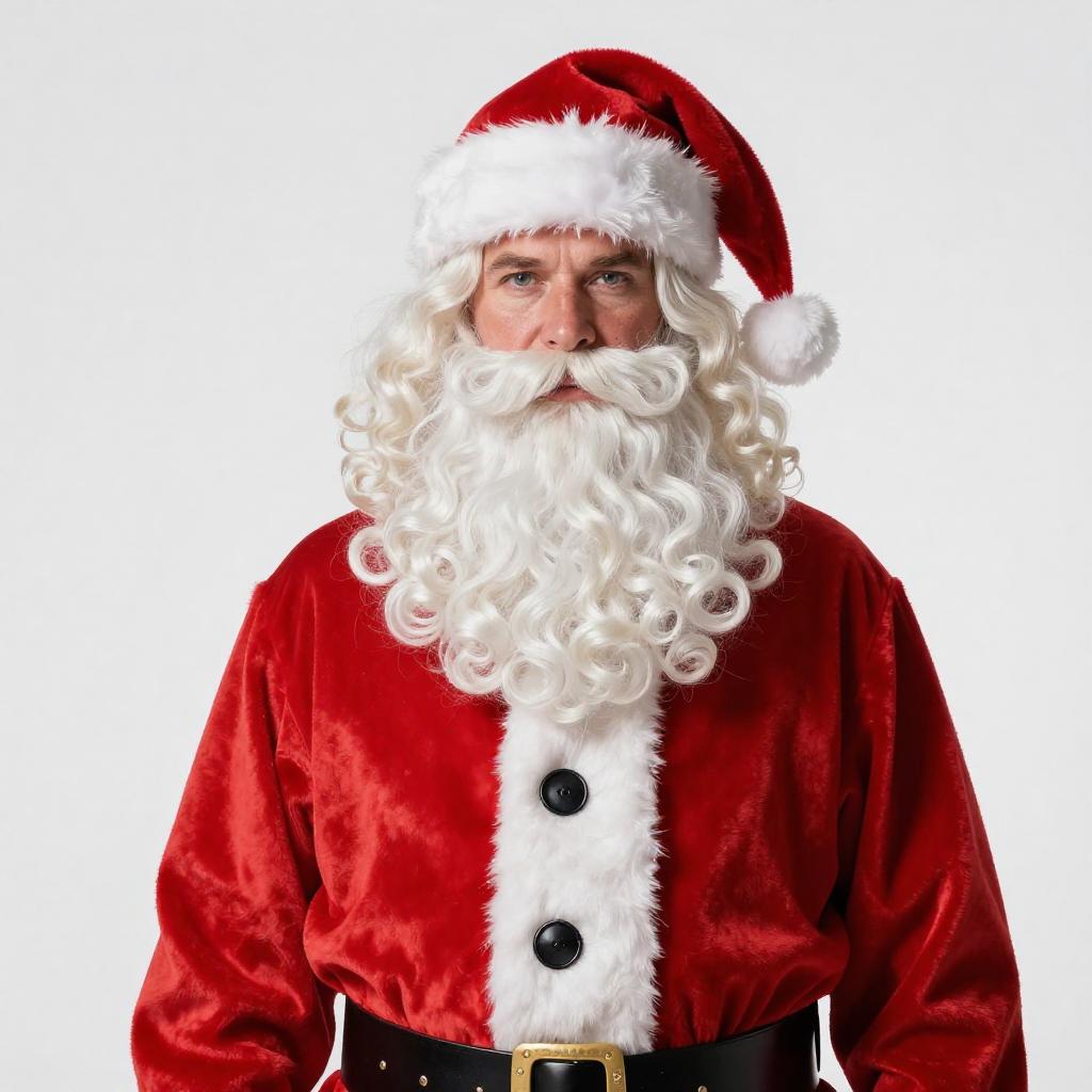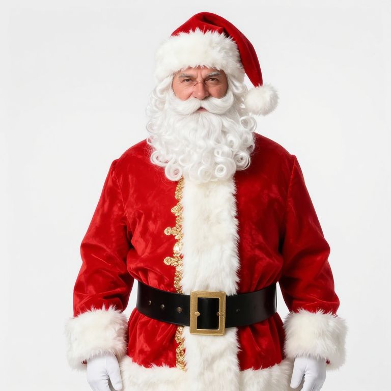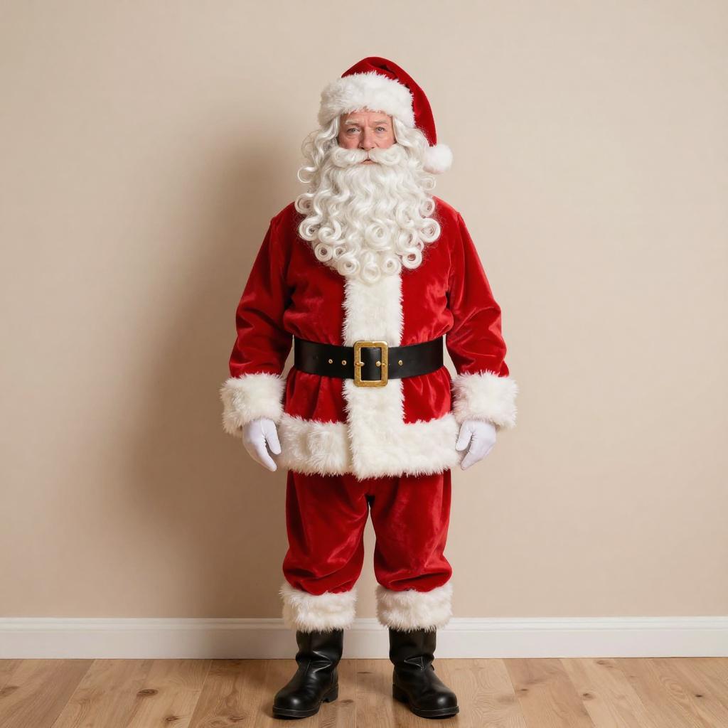 Male santa claus outfit with a red and gold jacket and a red hat.