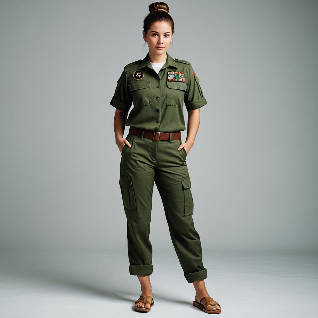 Realistic Solo Girl in Military Uniform