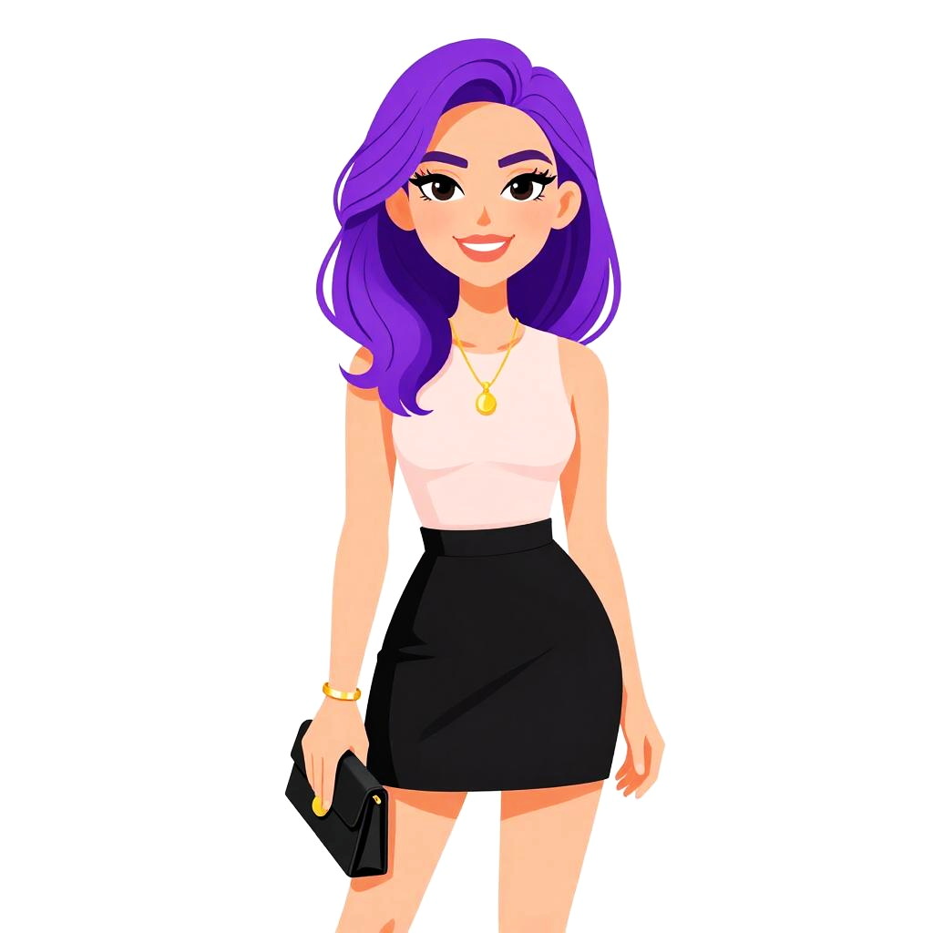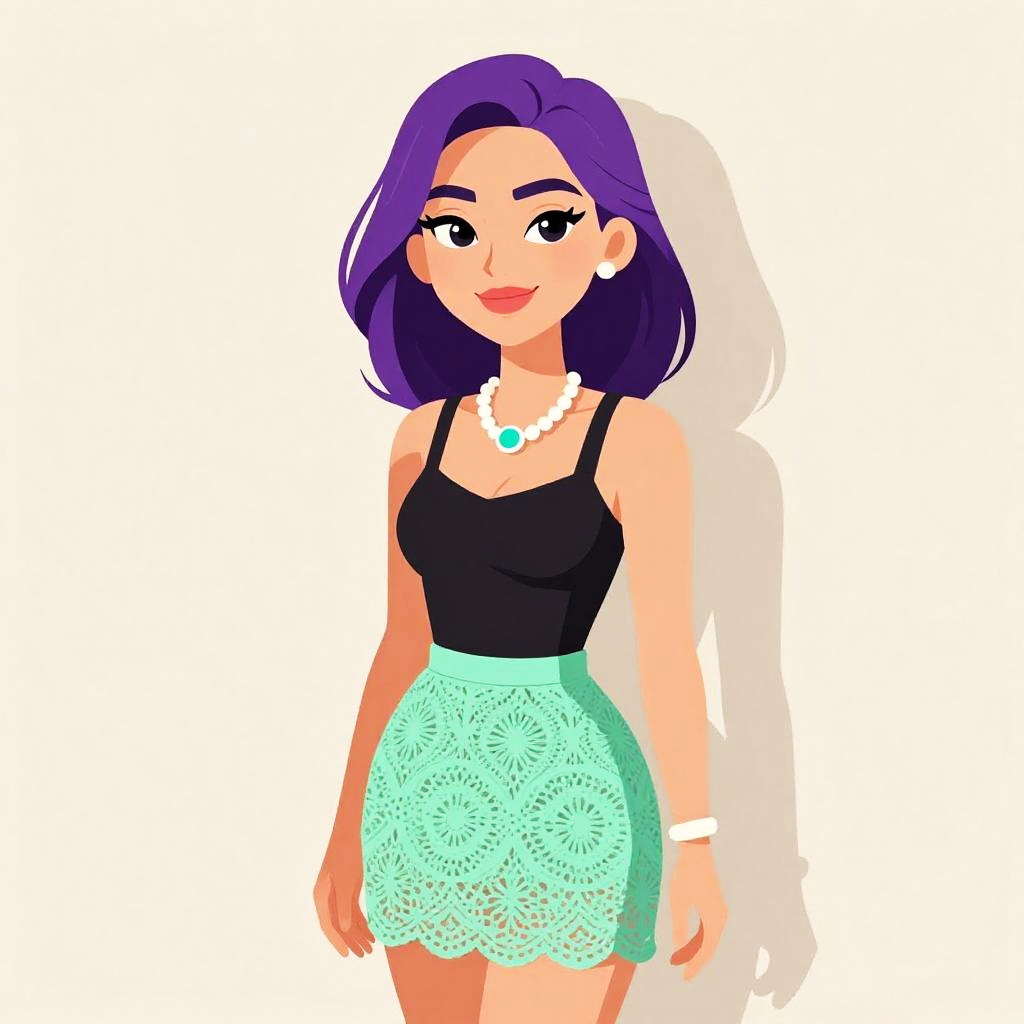 Woman with pretty face and pretty hair. Woman, modern minimalist, sleeveless shift dress in bright yellow, round neckline embellished with black beading, thigh-length hem, subtle bracelet, grey studio background --sref 1467