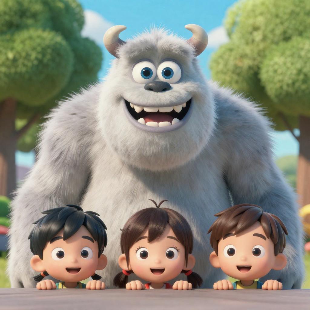 CGI image of a group of cartoonish, prehistoric humans and a pig-like creature with exaggerated features. They stand in a rocky, desert-like landscape with a fiery, orange-red sky. The characters have various fur and animal-print clothing, and most are raising their arms in a celebratory pose. The pig-like creature stands in the foreground.