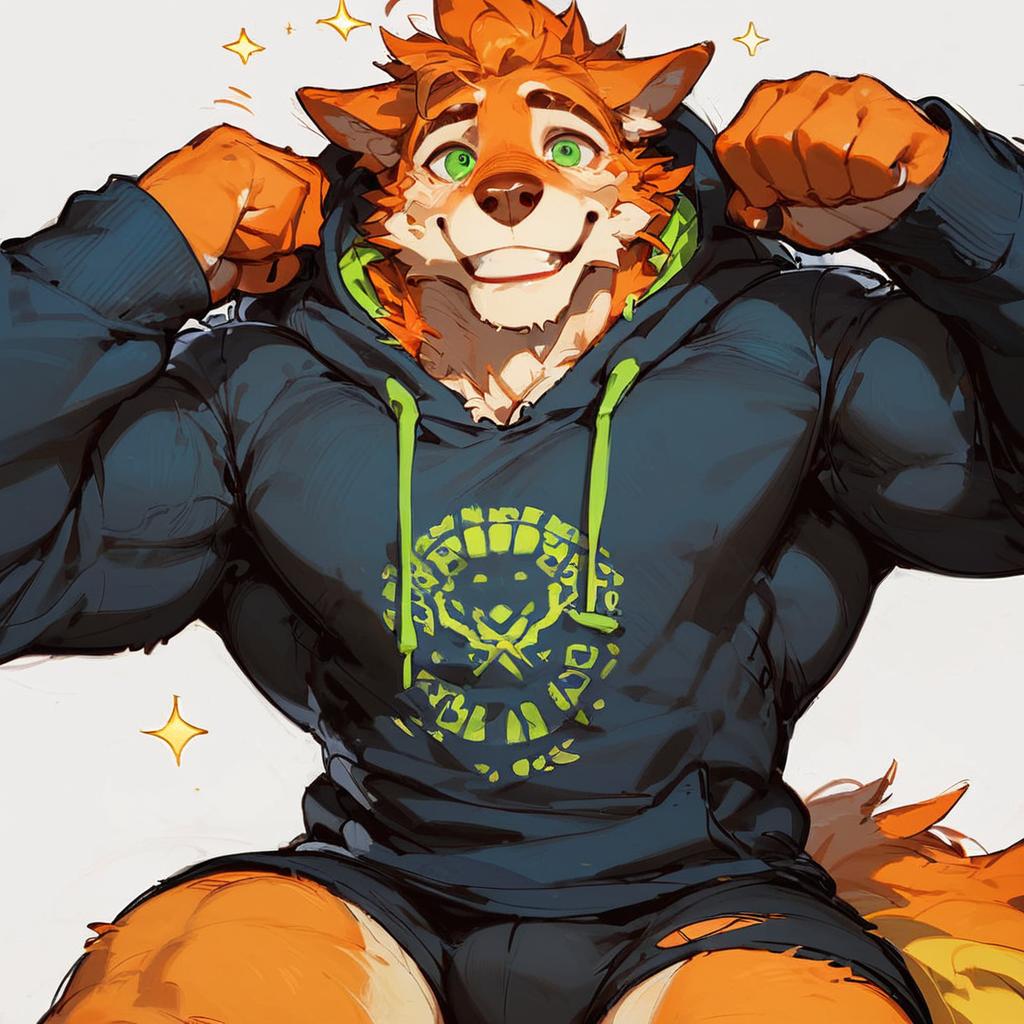 (zPDXL), very aesthetic, score_9, good lights, good colors, good face, , portrait, wavy hairs(bottom view:1.2), (monocolor green, green eyes:1.2), (orange furs, orange hairs:1.3), simple background, (musculegs:1.1), (ripped muscles:1.2), (big pecs:0.3)(anthro rexouium:1.2), looking far away, (think lines, drawing, sketch, draft, simple style:1.2), orbitgood, sexy pose, (hoodie, muscles through clothes:1.3), smiling, very expressive face, (detailed style:1.3)