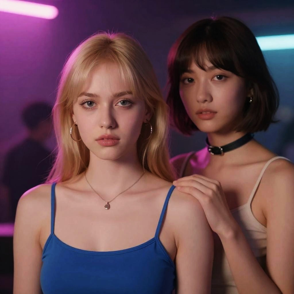 Anime Women in Neon Nightscape