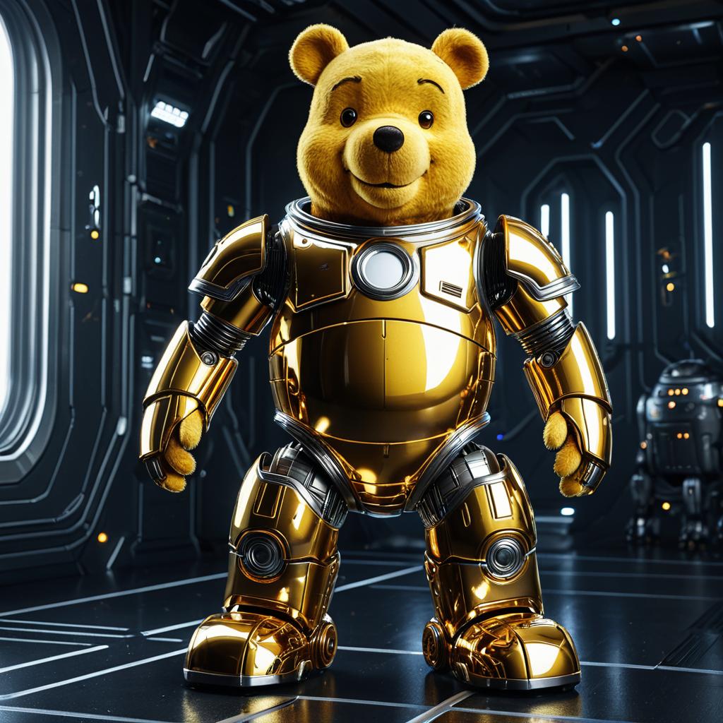 Absurdres, (realistic:1.5), (masterpiece, Extremely detailed CG unity 8k wallpaper, best quality, highres:1.2), (ultra_detailed, UHD:1.2), perfect illumination, rim lighting, sidelighting, volumetric fog, god rays, (dark background:1.3), (grizzly bear heavy-ops commando (dark brown fur, bulky armored exoskeleton, camo netting, tactical gloves, battle scars, heavy load-bearing vest):1.4), (furry:1.1), animal, solo, standing, tactical armor, gloves, load bearing vest, pouches, holster, camouflage accents, neon-lit derelict spaceship corridor, holding, weapon, gun, integrally suppressed compact 9mm PDW with emerald-green muzzle glow, braided sling, faint tracer sparks and muzzle smoke, sling, muzzle smoke, cinematic DOF, particles, unreal engine, (no humans:1.2), blurry background