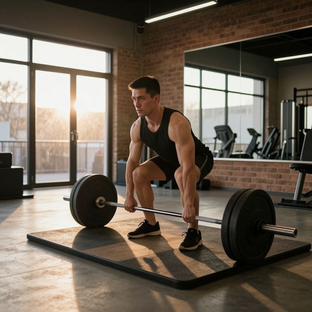 Fit Man Training in Gym Squats