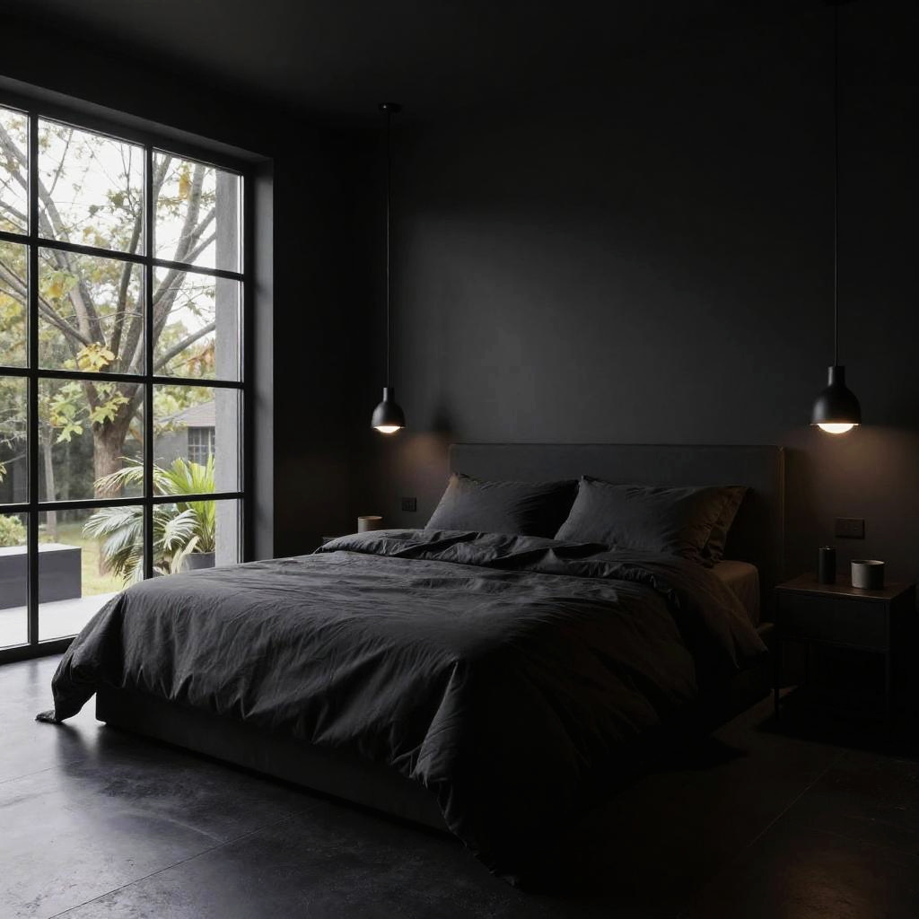 Photorealistic Black Bedroom Scenery 8K