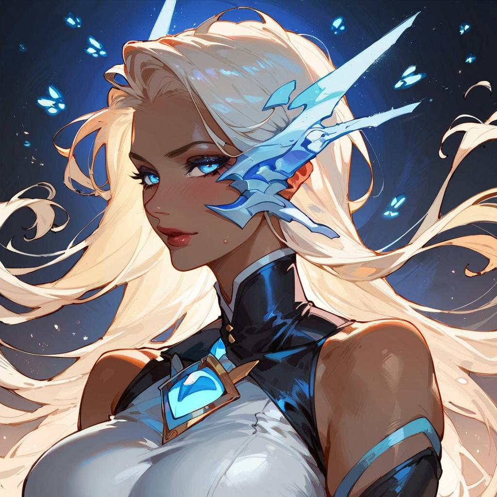 Score_9, score_8_up, score_7_up, score_6_up, rating_questionable, zPDXL, pretty woman with long hair, horny face, blue eyes, hearts floating in the air