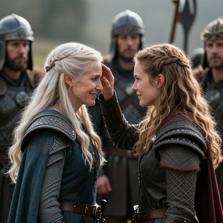 When the warriors returned from their perilous journey, Freya welcomed them and blessed each of them, She smiled and gently touched their foreheads, her eyes full of concern, Every warrior felt a sense of belonging and comfort in her tenderness, This scene shows her selfless care for the warriors and her motherly protection