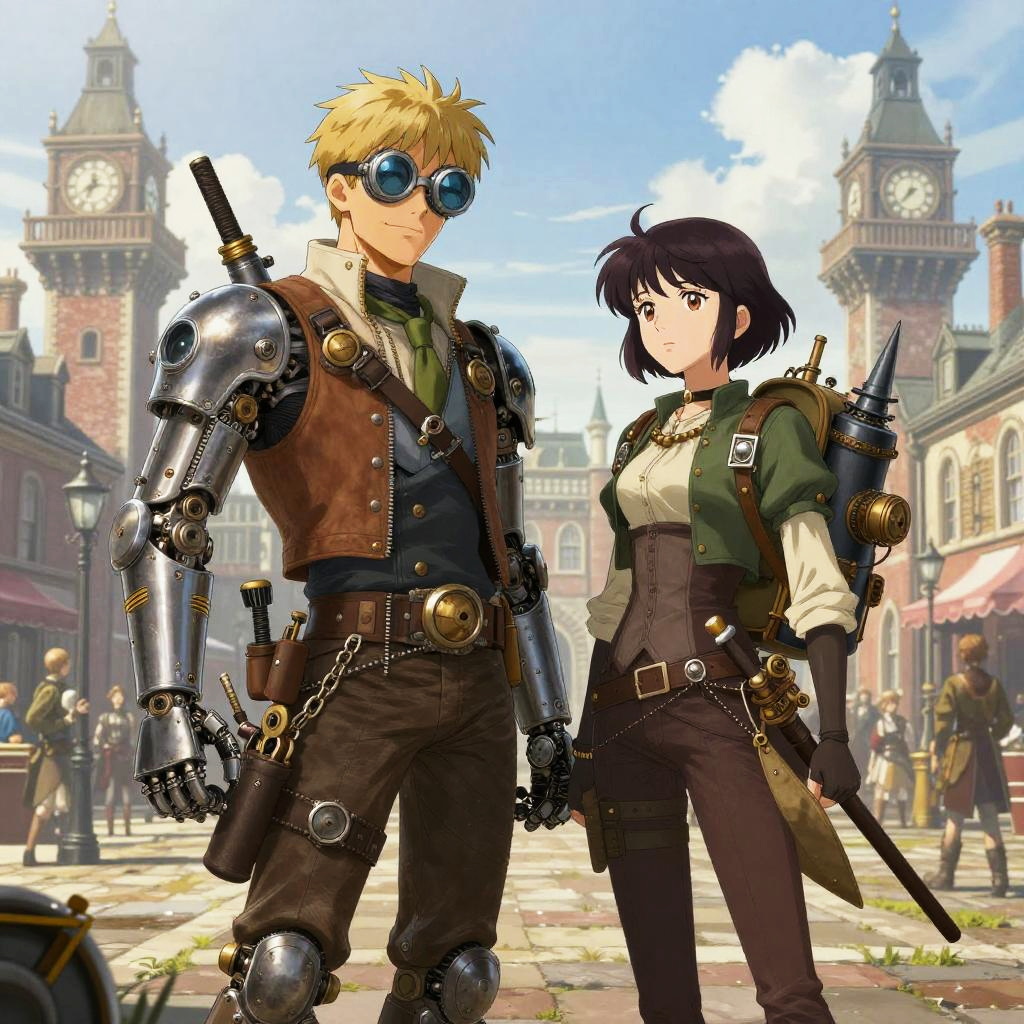 Two undercover agents, featuring a sharp-eyed woman in a sleek black suit, a cautious man holding a concealed gadget, standing in a dimly-lit rooftop overlooking the city skyline, illustrated in the emotional and intricate style of Hiromu Arakawa.
