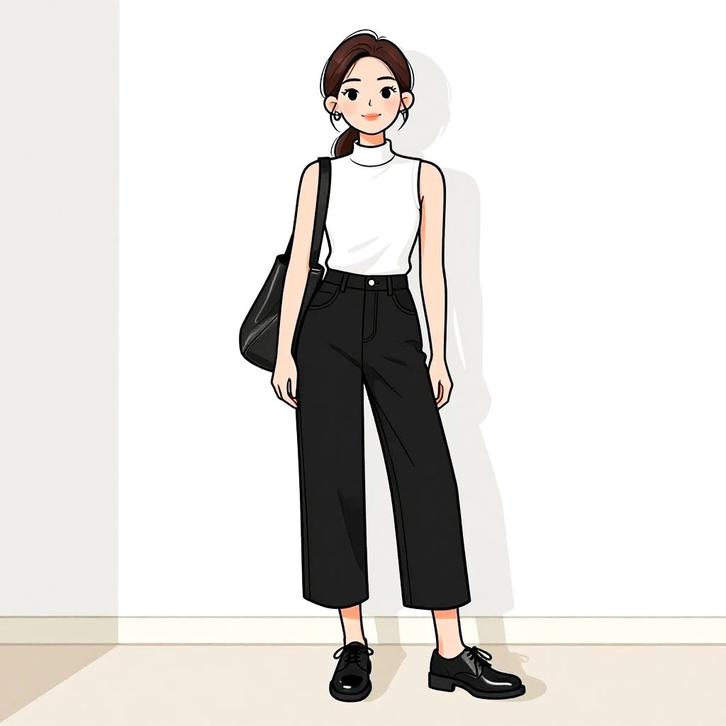 Woman with pretty face and pretty hair. Woman, casual streetwear, oversized plush pink jacket with large collar, graphic t-shirt in tan with black typography, high-waisted plush navy blue pants, white sneakers, hoop earrings, minimalist makeup, white studio background. --sref 1467