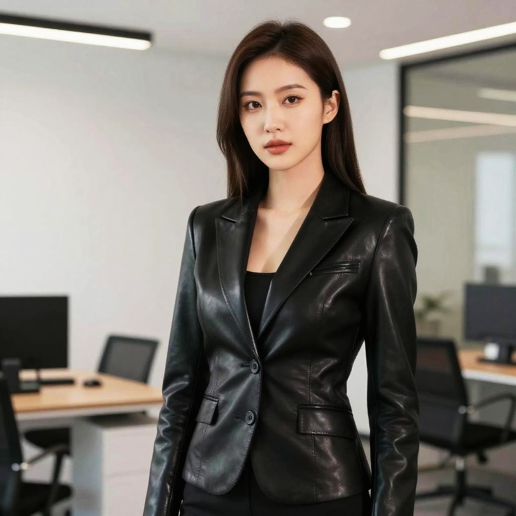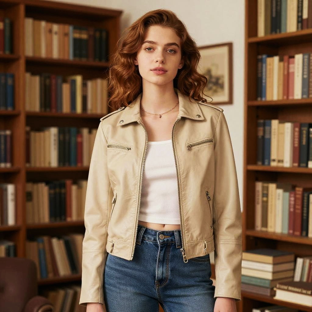 Woman with Pink Bob Hair and Yellow Leather Jacket