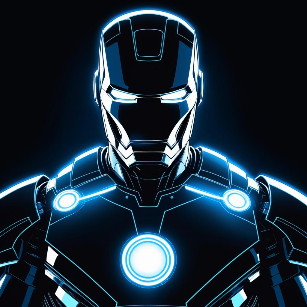 Duotone Digital Sketch of Iron Man with Glowing Arc Reactor