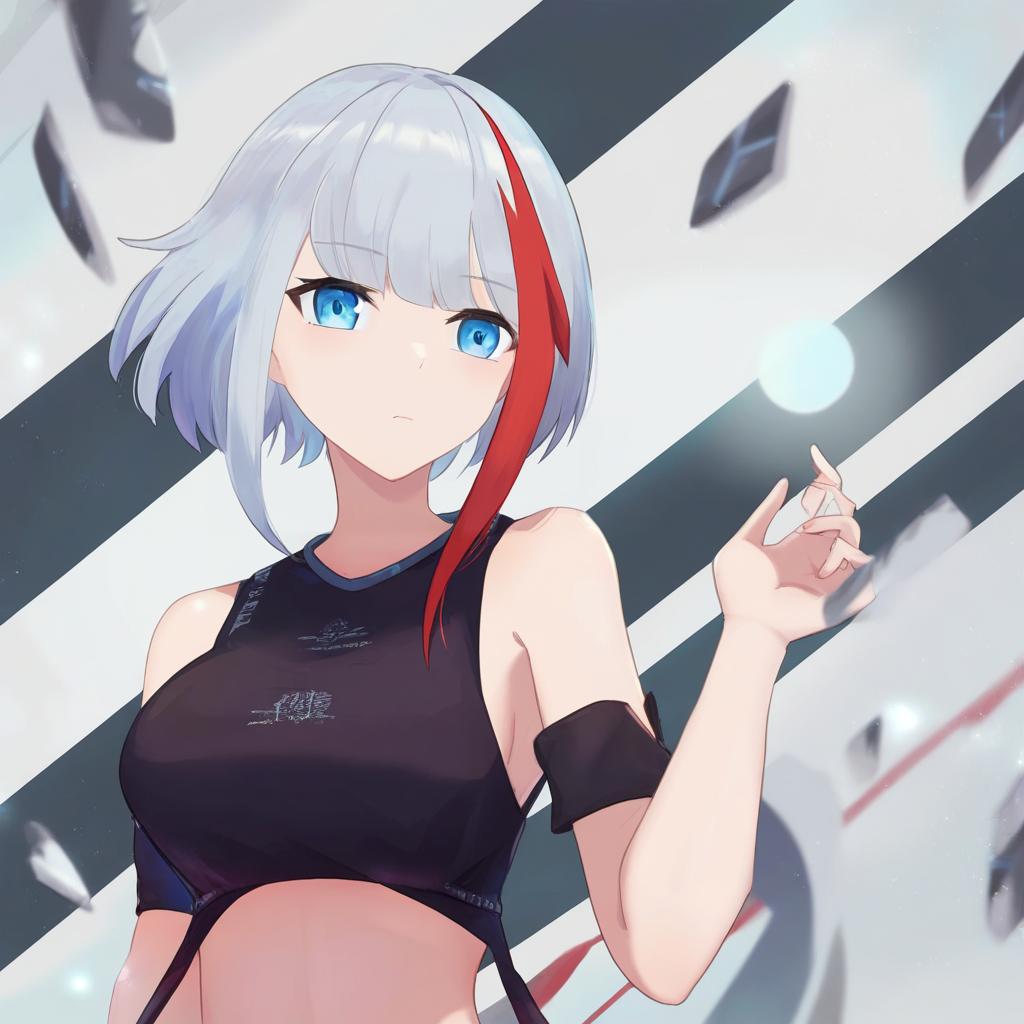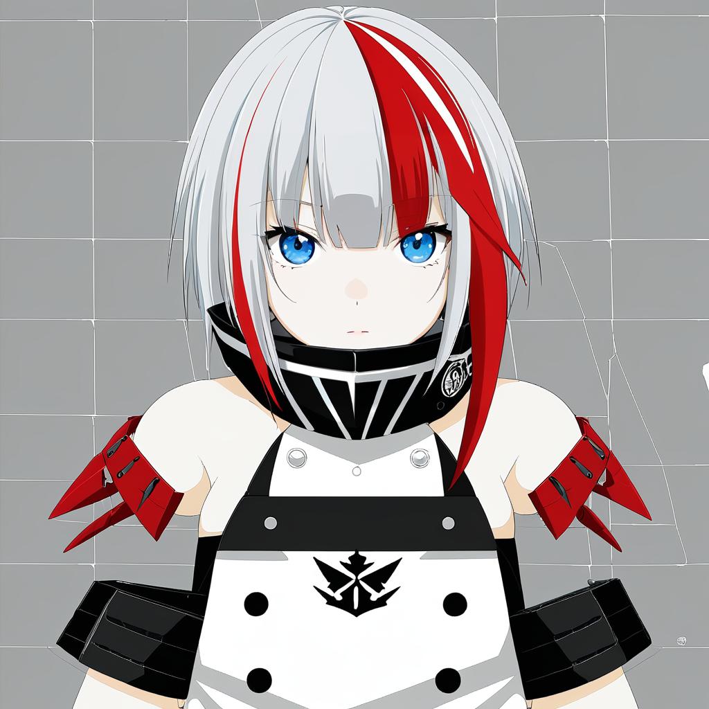 Admiral graf spee (azur lane), azur lane, 1girl, blue eyes, streaked hair, red hair, short hair, white hair, grey hair, sidelocks, medium breasts, by artist koto inari, anime
