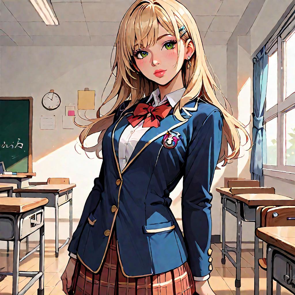 Anime Schoolgirl in Classroom
