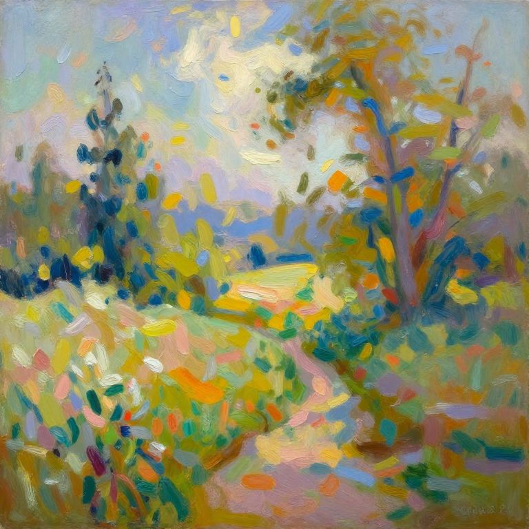 Painting filter for photos transforming a serene landscape into a vibrant impressionist artwork, with bold brushstrokes, rich colors, and dynamic lighting, reminiscent of classic oil paintings, soft textures blending nature and art in harmony.