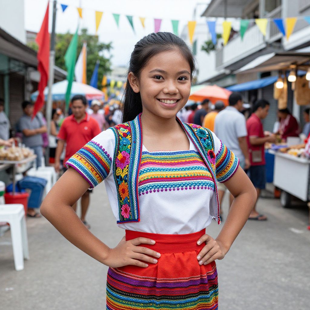 Filipino Woman in Traditional Fiesta Attire