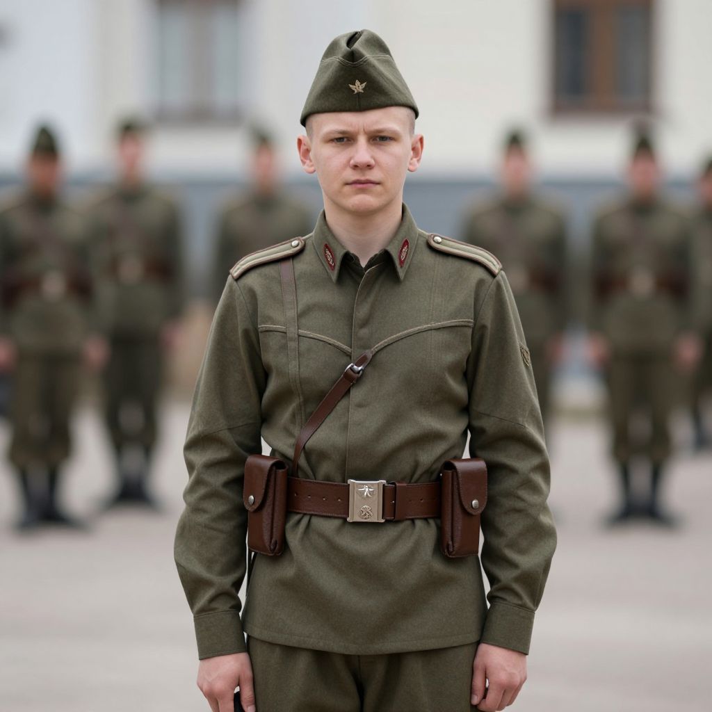 Young Soldier in Russian Military Uniform