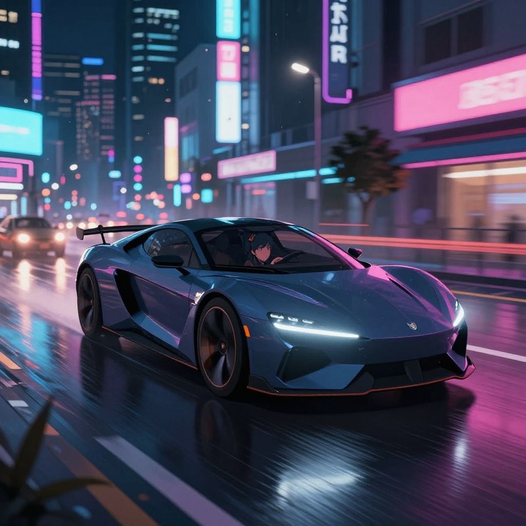 Quantum Cryptography red hare rides in a sports car, Moscow streets, cartoon, anime, 2D, comics, cyberpunk, high speed,