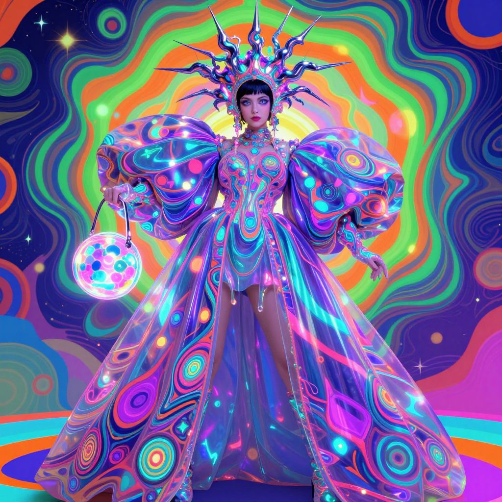 Regal Futuristic Queen in Neon Robe