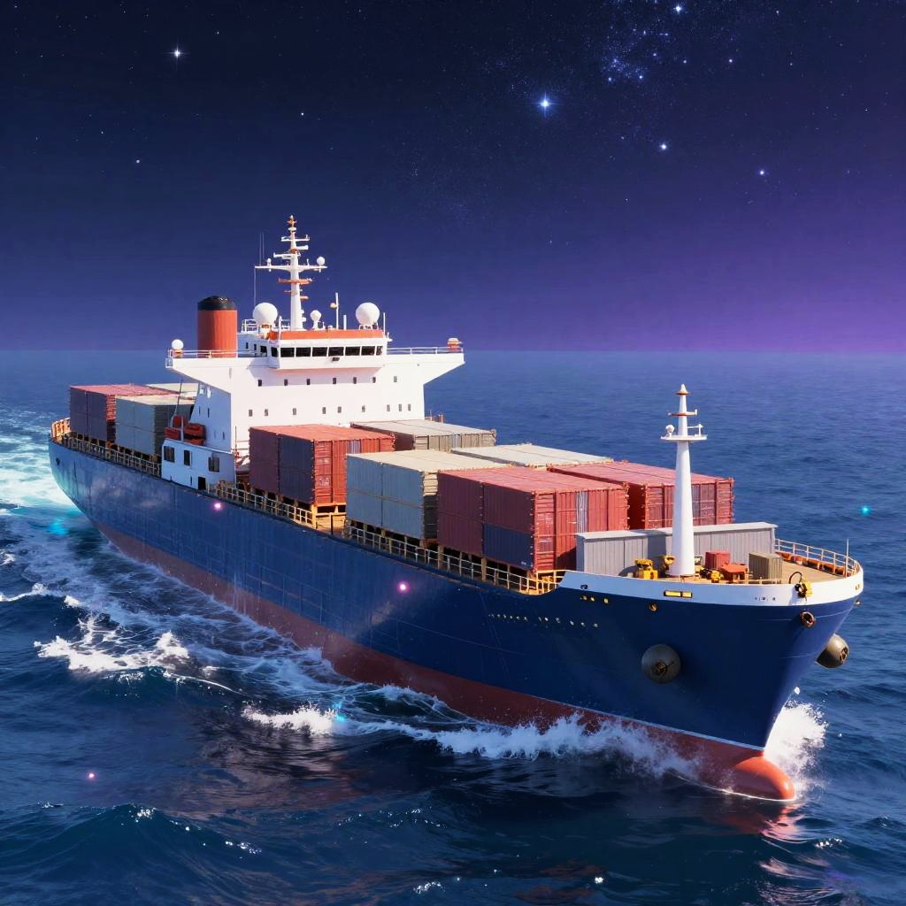 Shipping prompts showcasing a busy harbor scene at dawn with massive container ships being loaded by towering cranes, realistic style, high detail and dynamic lighting