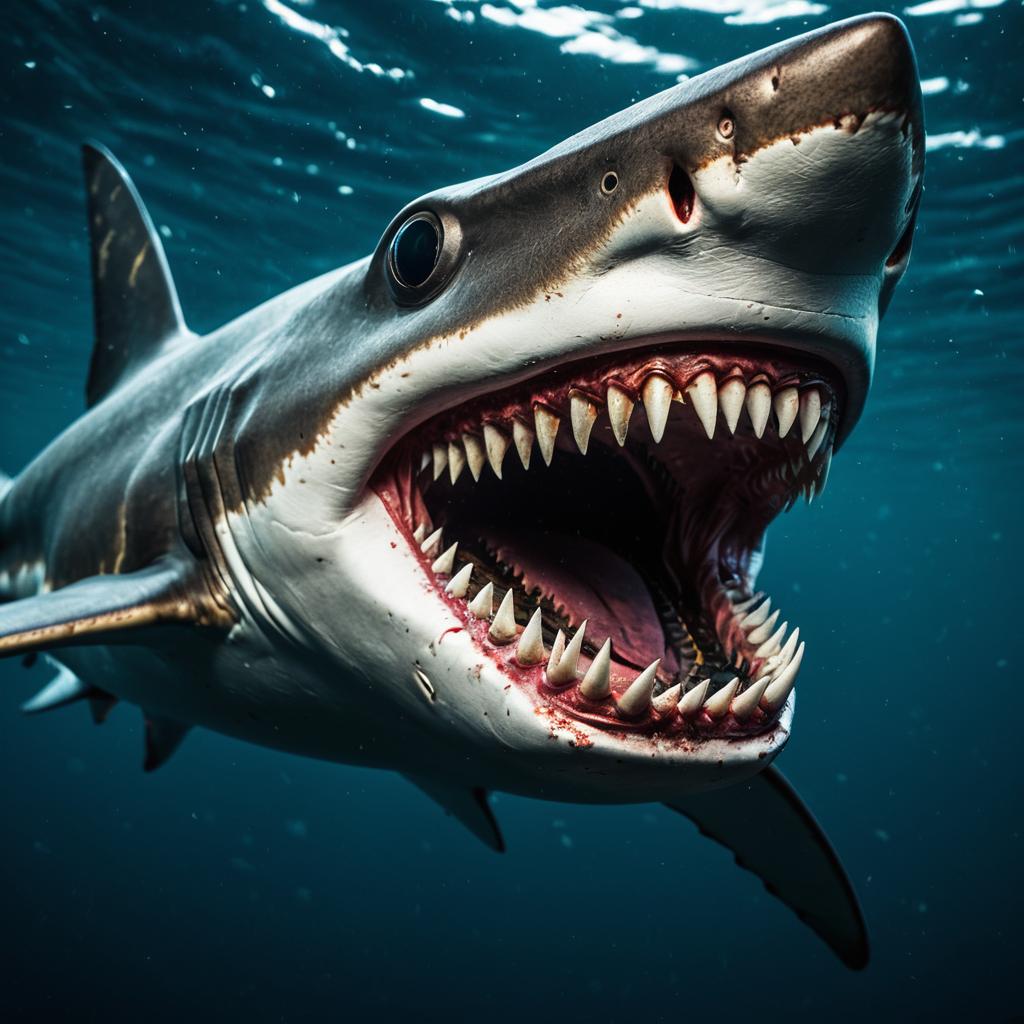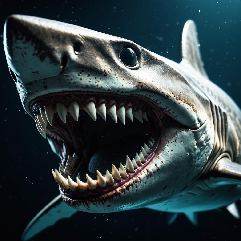 Caramel shark with 19 rows of teeth in its mouth, lovecraftian horror monster shark, full hd, canon eos r5, octane render Photography, Cinema, 8k, Best Quality, Cinematography, Color Grading, Ultra Wide Angle, Depth Of Field, ultra detailed, beautifully color coded, crazy details, intricate details, beautifully color grading, cinematic, cinematic softbox lighting, editorial photography, photo shoot.