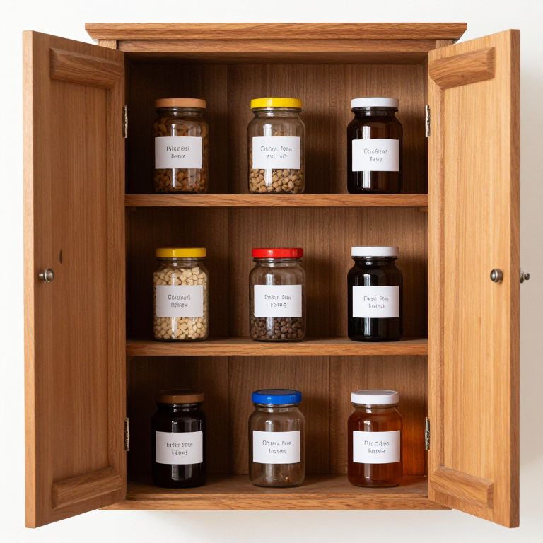 Wooden Cabinet with Labeled Containers