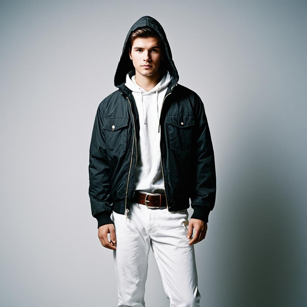 Teen Boy Wearing Grey Hoodie and White Sweatpants