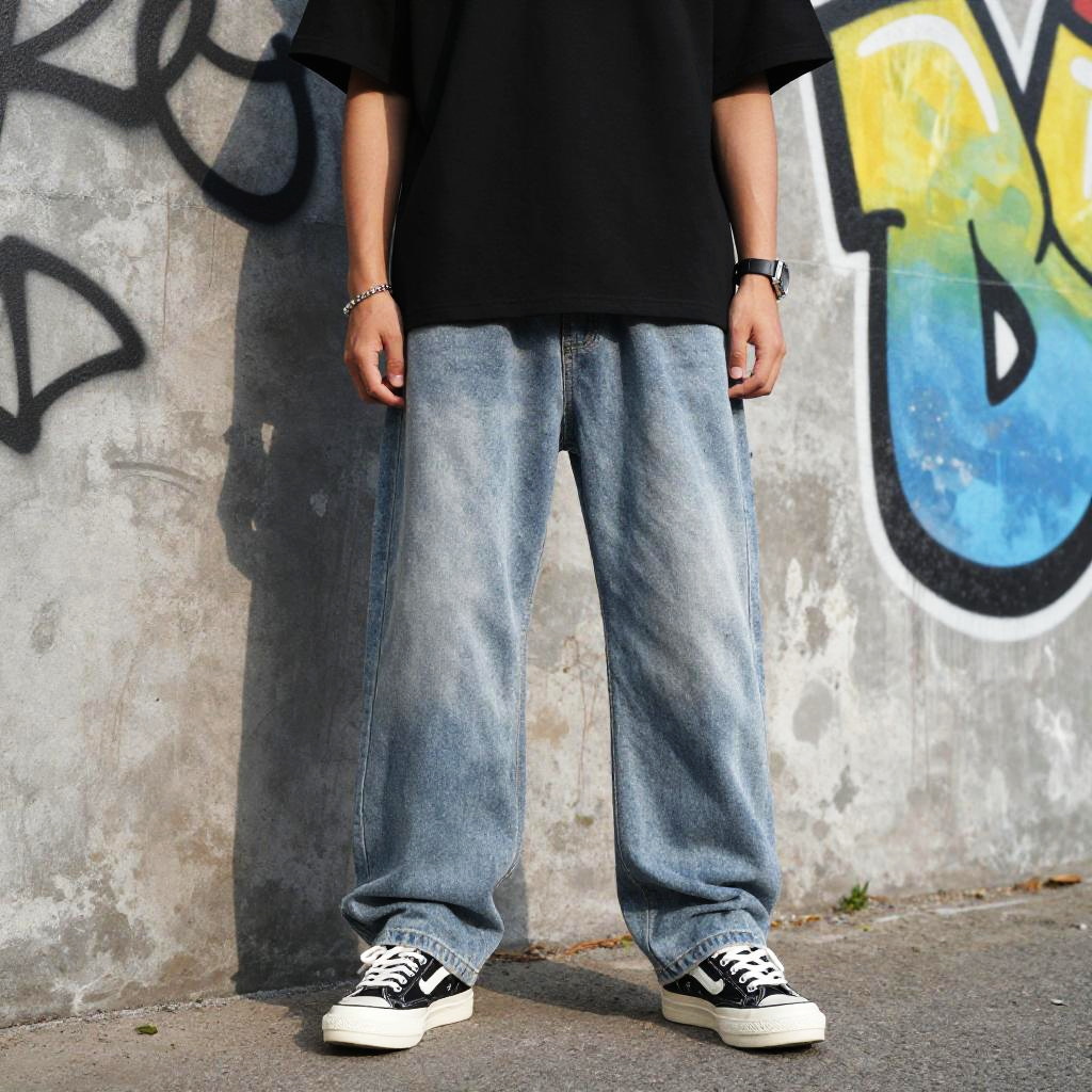 Portrait of a boy sagging pants with a skateboard under his arm, urban backdrop with skyscrapers and street art, cool and edgy vibe, golden hour lighting