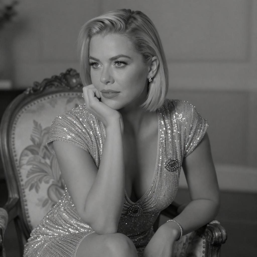 Elegant Blonde in Black-and-White Portrait