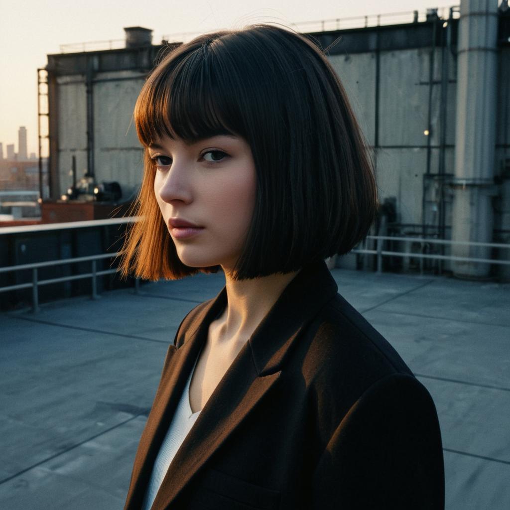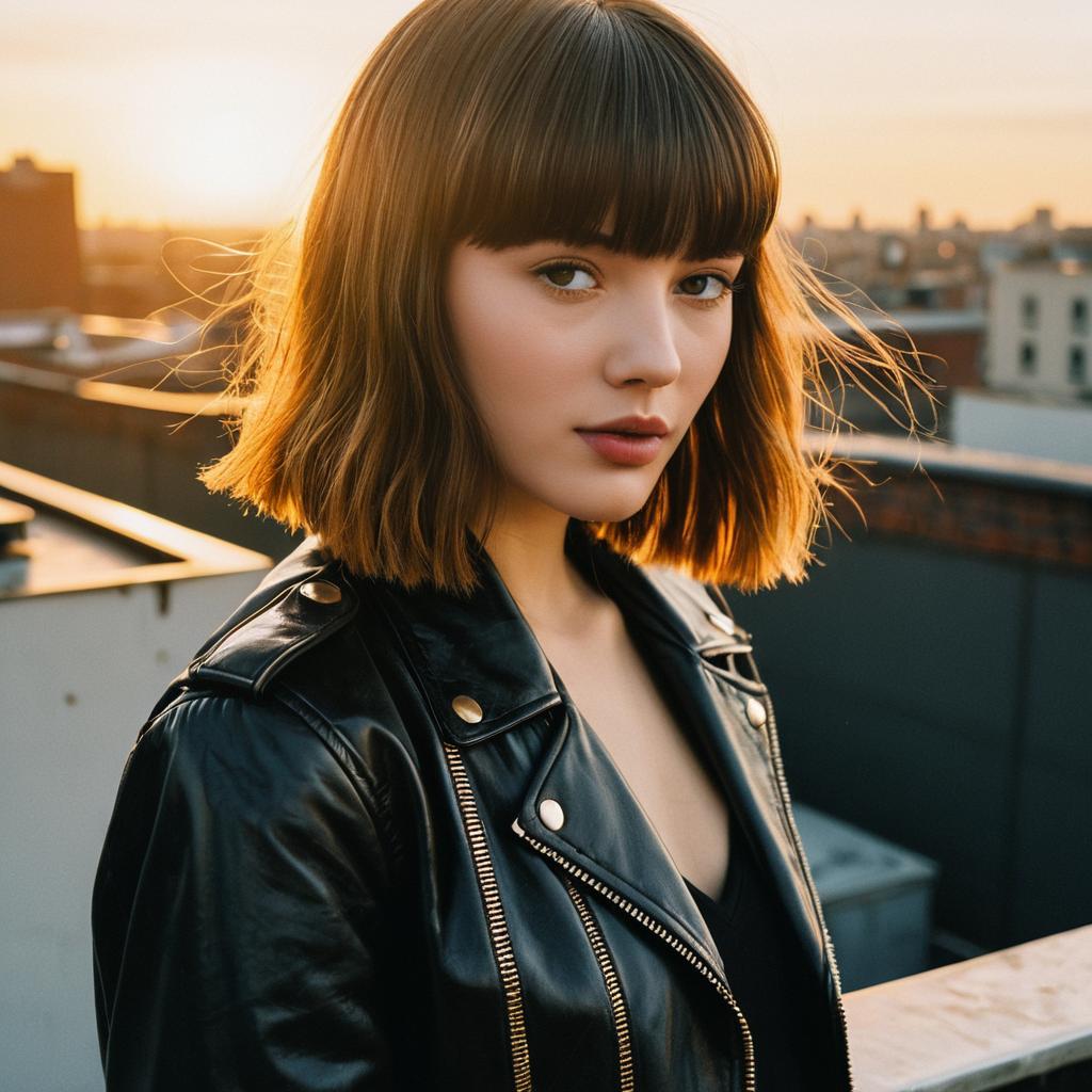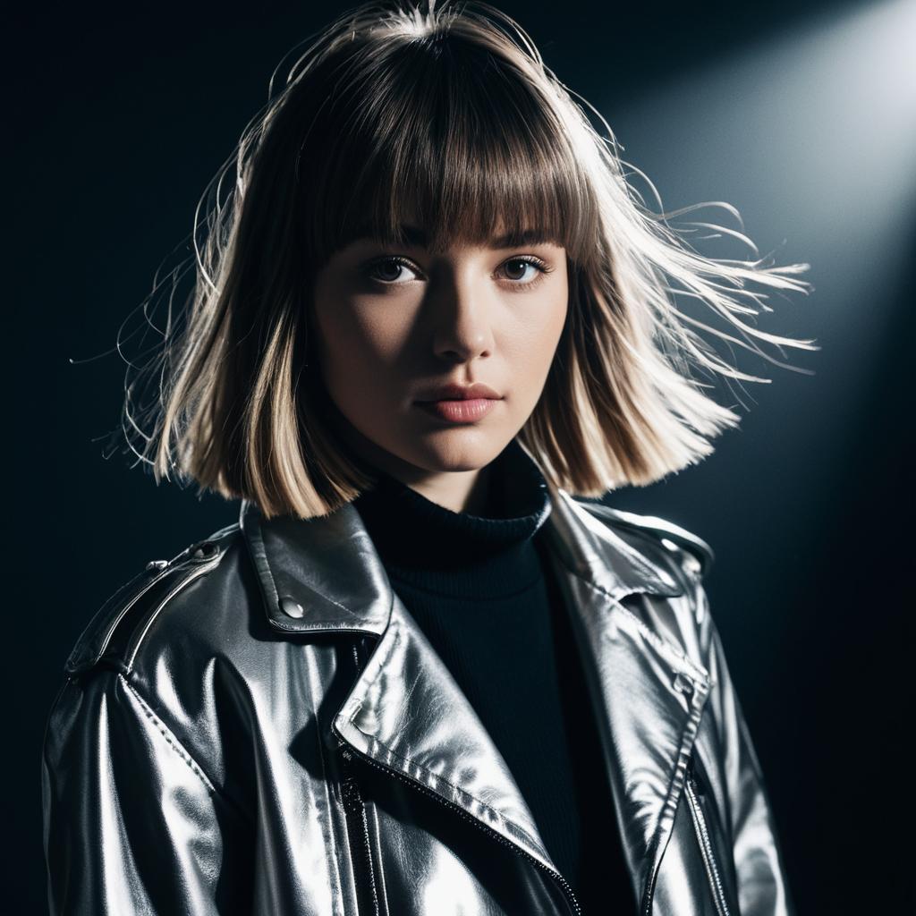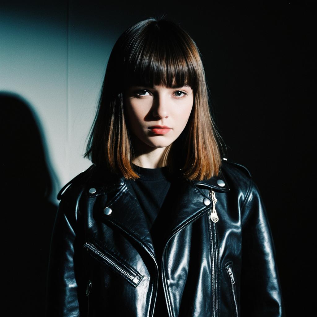 Teenage Girl with Full Bangs and Avant-Garde Jacket