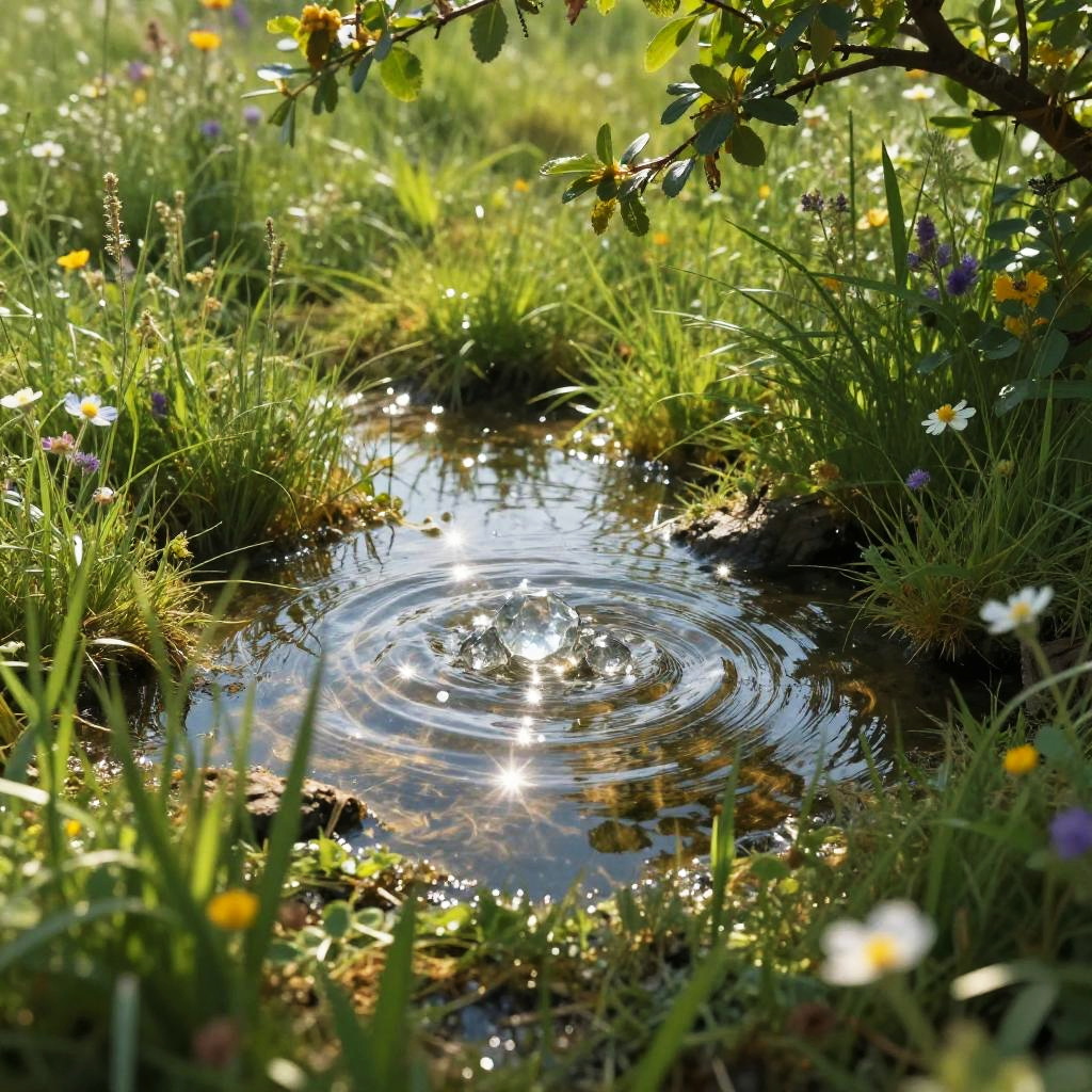 Tranquil Crystal Water Pits in Meadow