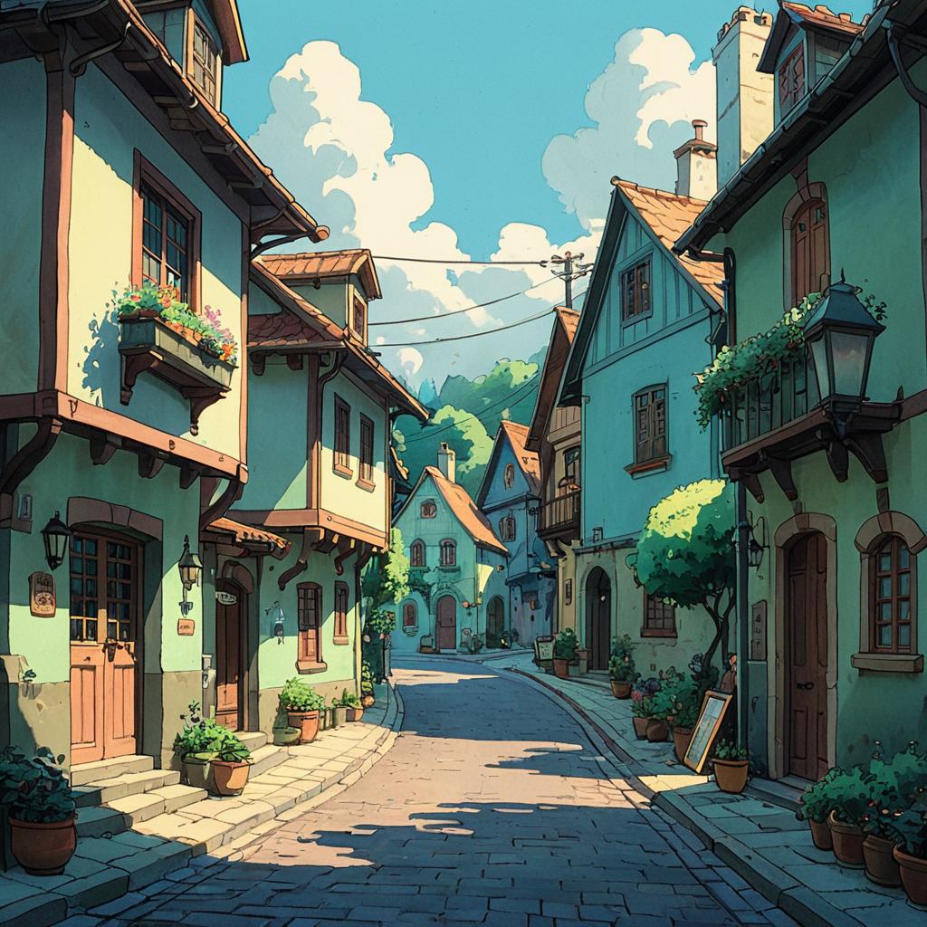Wholesome animation key shot, a little village street, studio ghibli, pixar and disney animation, sharp, disney concept art watercolor illustration by mandy jurgens and alphonse mucha and alena aenami, pastel color palette, dramatic lighting