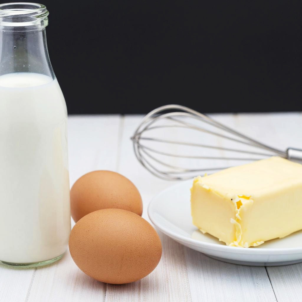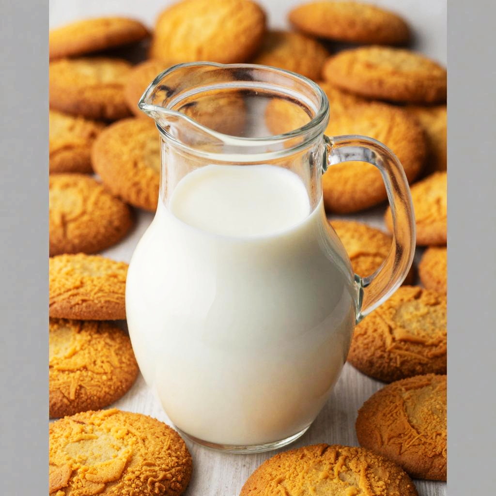 Glass Pitcher of Milk on Orange Cake