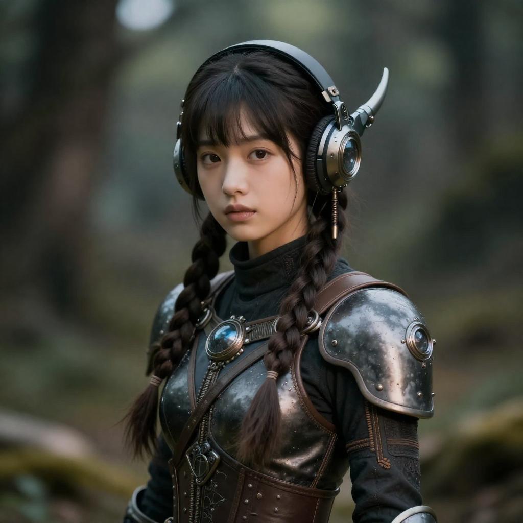 Medieval Cyberpunk Girl Tech-Nature Fusion