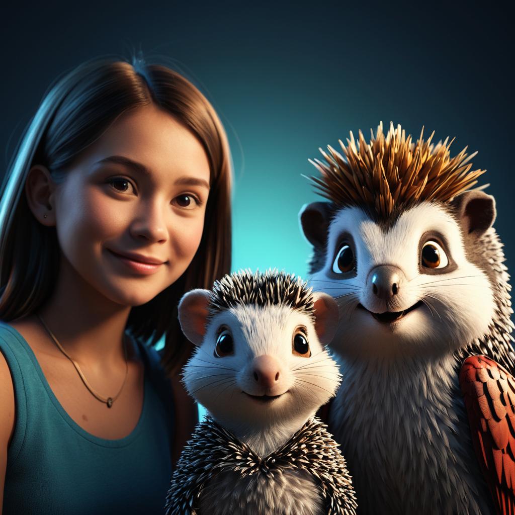Translucent a cartoon portrait with three characters: a laughing female phoenix, a sleepy mommy koala, and a chatty baby otter. Portrait, chiaroscuro, holy cinematic lighting, 3D, C4D, blender, gradient background, octane rendering.