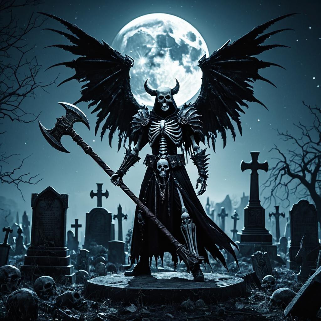 Skeleton Knight with Fiery Sword on Ancient Battlefield