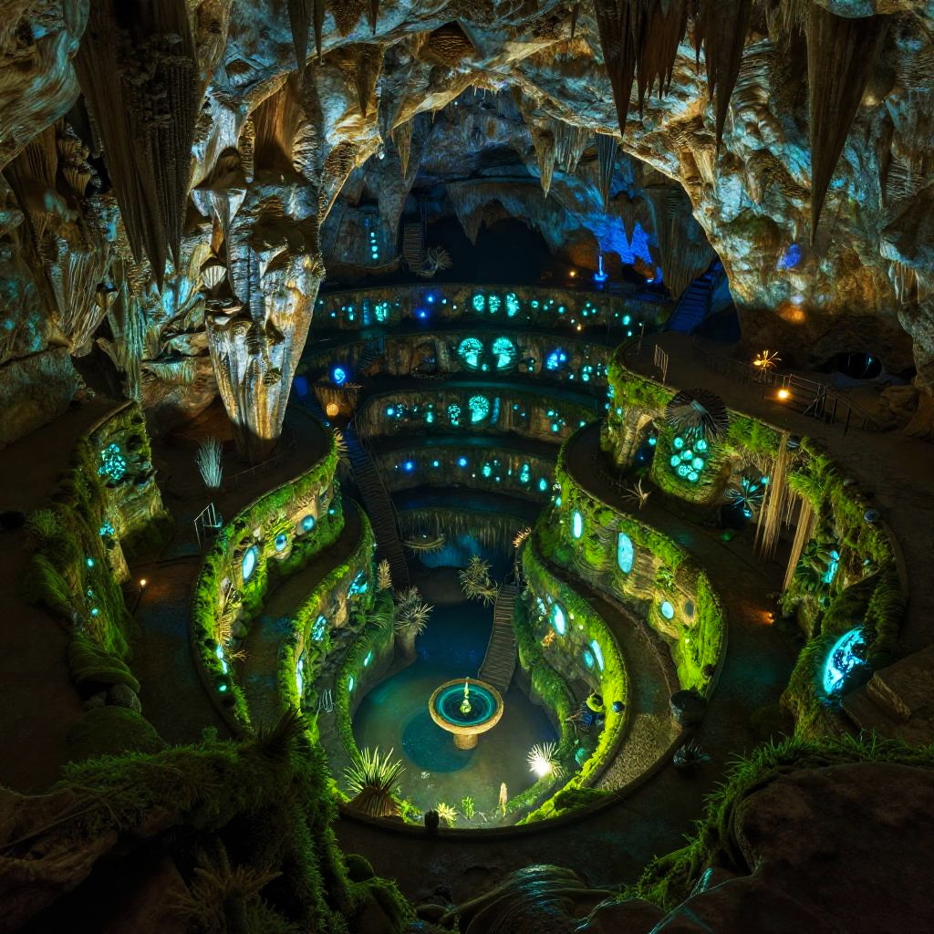 HDR Wide-Angle Bioluminescent Cave Sanctuary