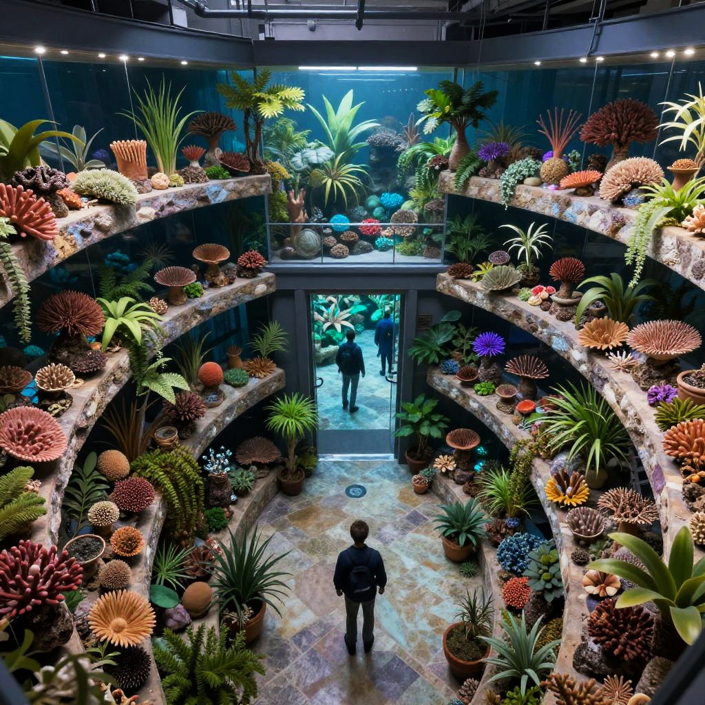 High-definition HDR wide-angle bird’s-eye view of a bioluminescent cave sanctuary, with terraced walls filled with glowing moss, natural lighting, Unreal Engine.