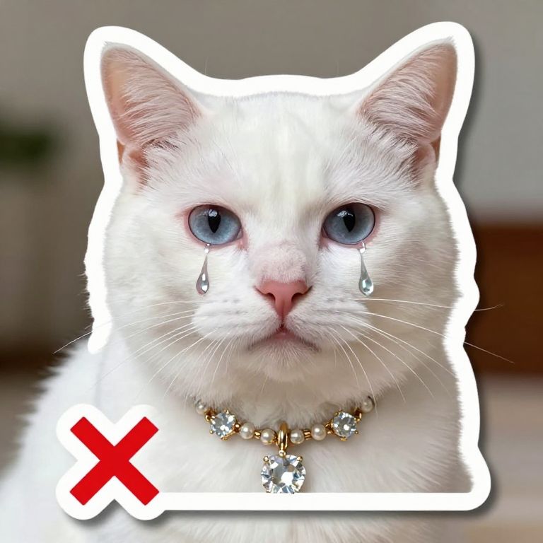Car Sticker High quality photo of a white cat shedding tears as if taken by Paolo Roversi, white cats wear a lot of jewelry, tears are like diamonds❌,