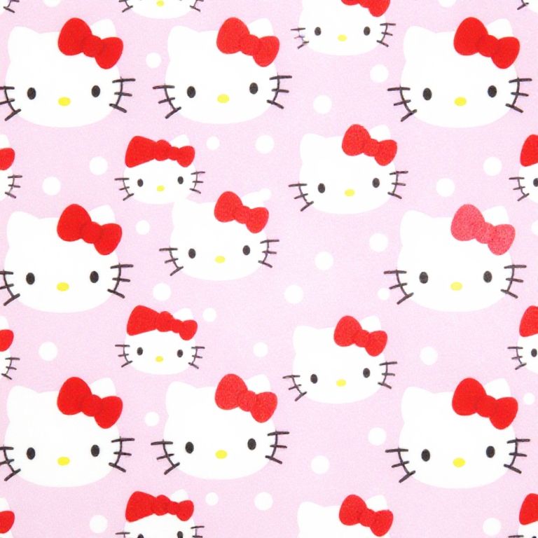 Tarpaulin Hello Kitty background with a seamless pattern of cute Hello Kitty faces, iconic red bows, and subtle polka dots in pink and white, creating a fun and adorable setting for birthday banners or playful event backdrops.