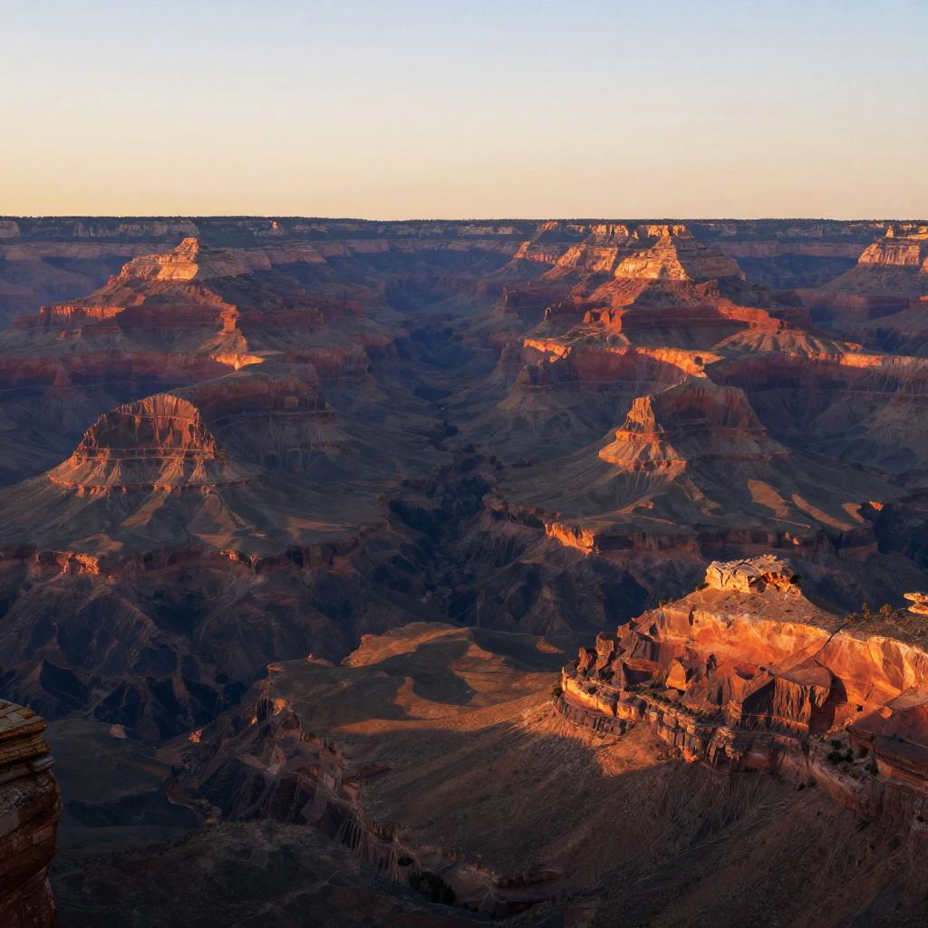 A peaceful river flowing through a lush green valley surrounded by rolling hills. The scene is bathed in warm golden sunlight during sunrise, with colorful autumn trees and a clear sky enhancing the tranquil atmosphere.
