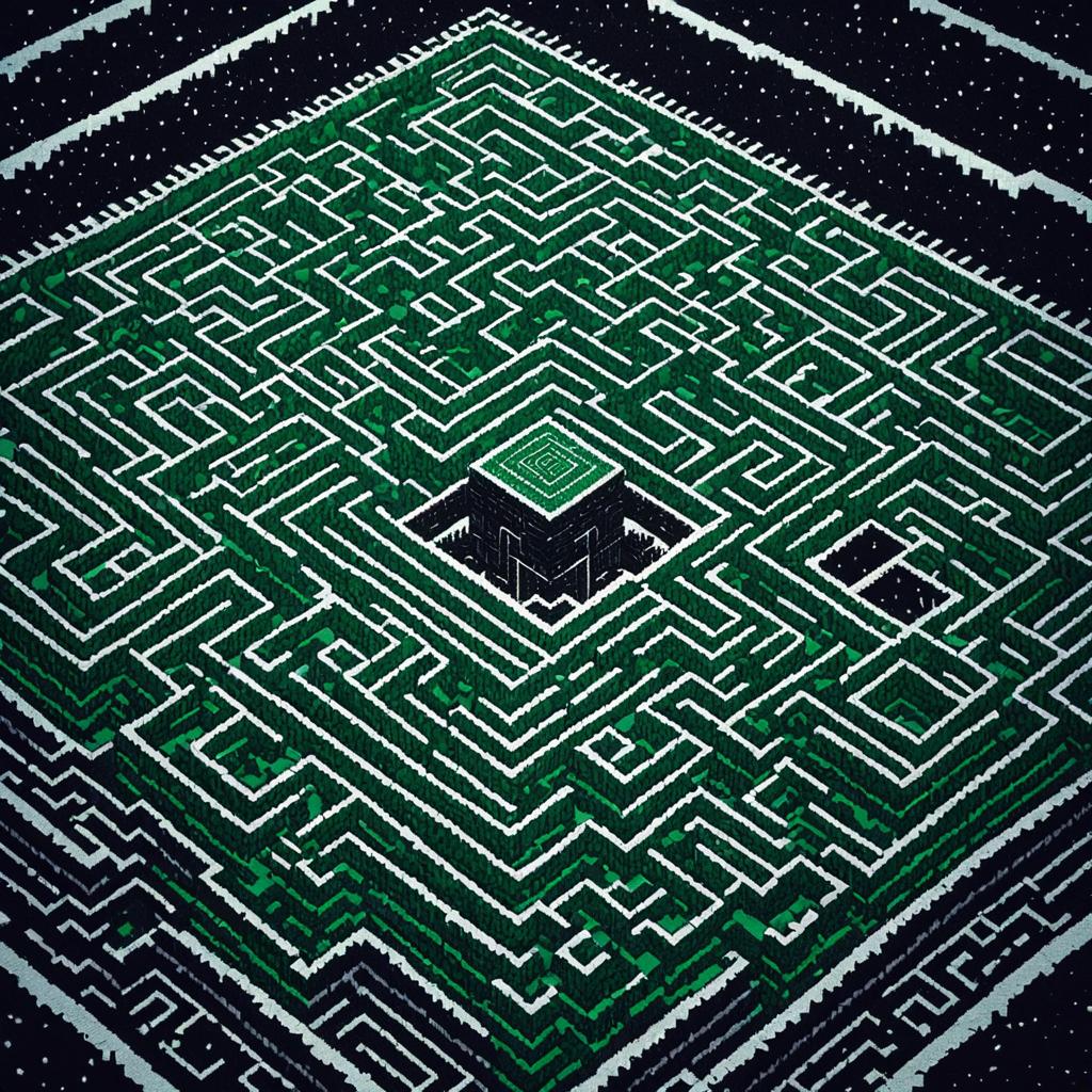 Beast 8-bit pixel knit, pine of earthen winters fit, mazes lost in labyrinth emitting emerald stone blocks sift, nothing is okay in the realm of kane , lost in dark and blizzard frames, do not fret for all is eternal,