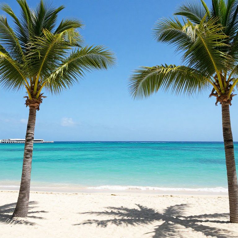 An oasis of serenity and luxury unfolds, where turquoise waters mirror the boundless sky, palm fronds whisper tales of tranquility, and every detail invites a retreat into the embrace of endless summer.