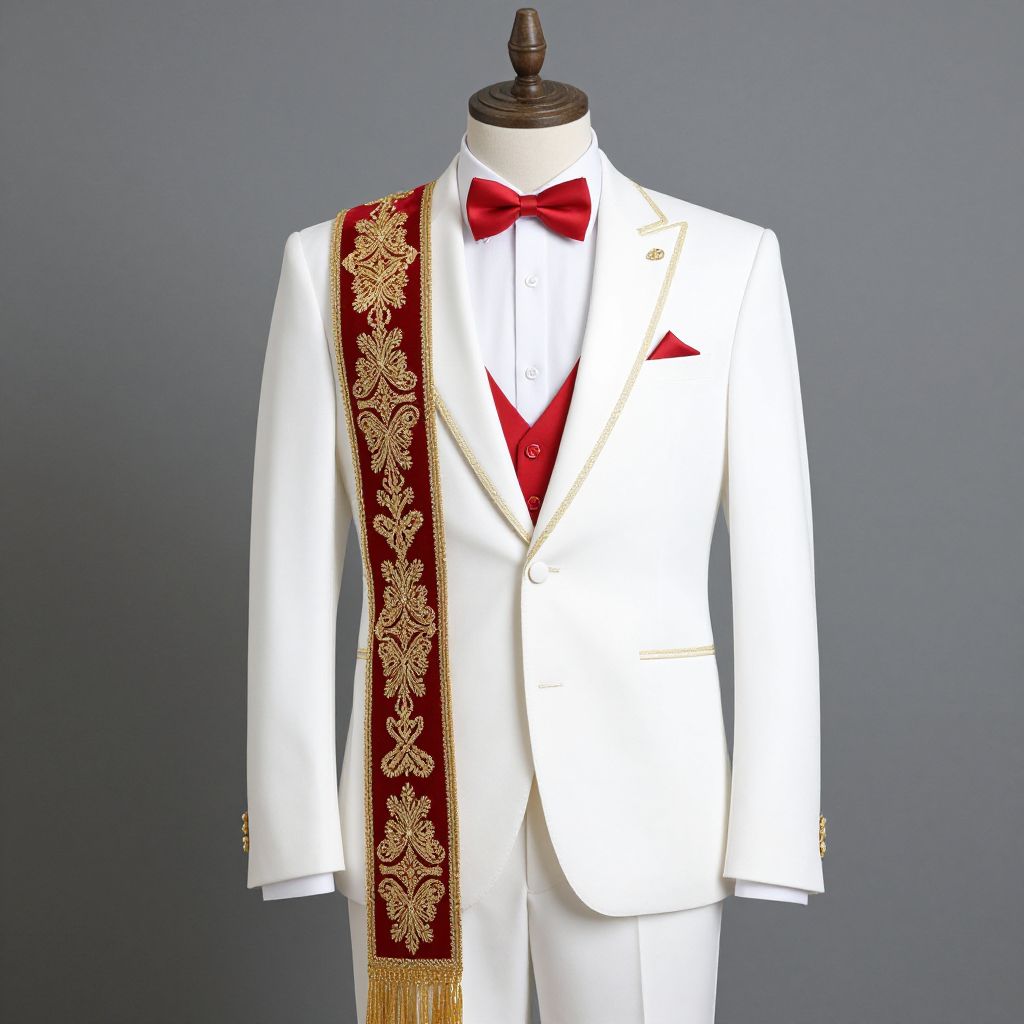 Man Wedding Dress Costume, man in a white suit and red and gold outfit