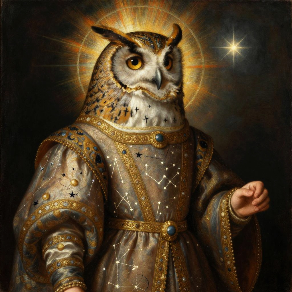 Celestial Owl Oracle in Rembrandt Style