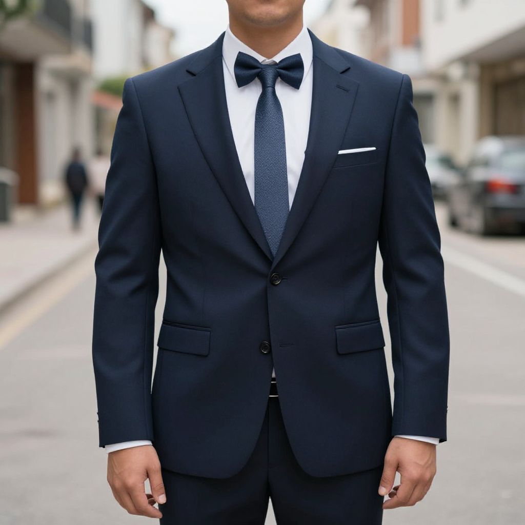 "Wedding Outfit Guest Costume, man standing on a street with a suit on"
